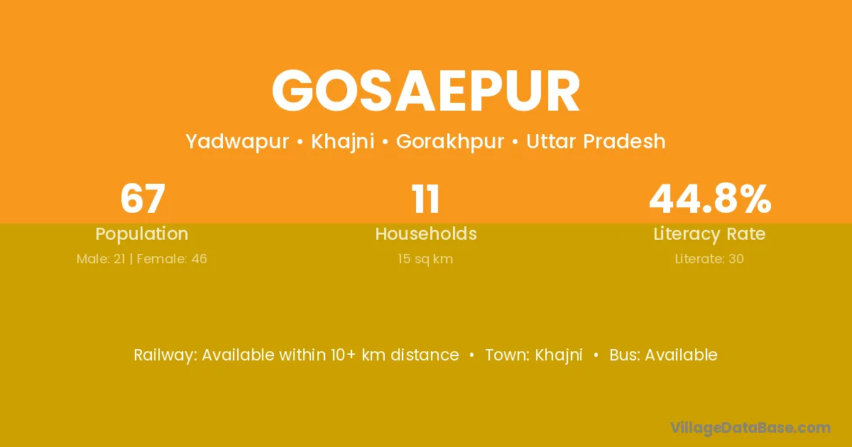 Gosaepur village has a total population of 67 people, of which 21 are males and 46 are females.
