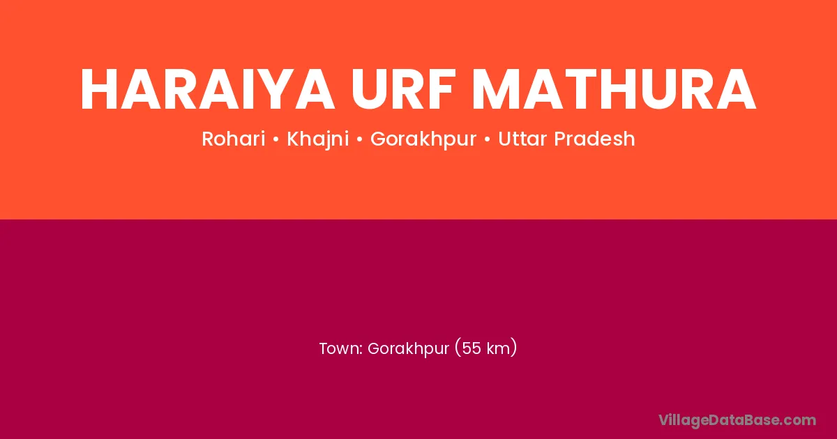 Gorakhpur (55 km) is the nearest town to Haraiya Urf Mathura village for major economic activities and is located approximately 55 km away.