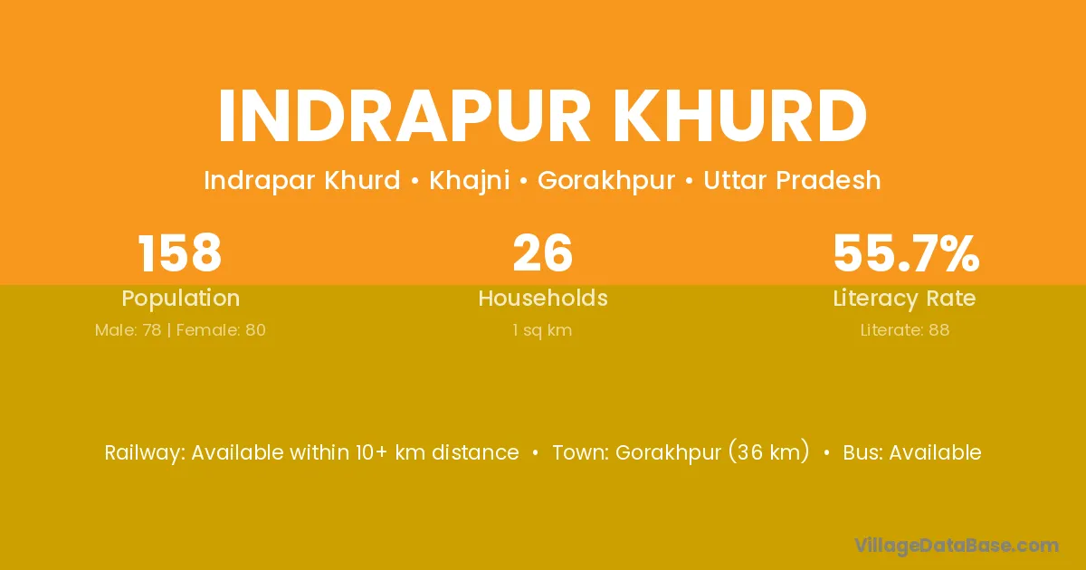 Indrapur Khurd village has a total population of 158 people, of which 78 are males and 80 are females.