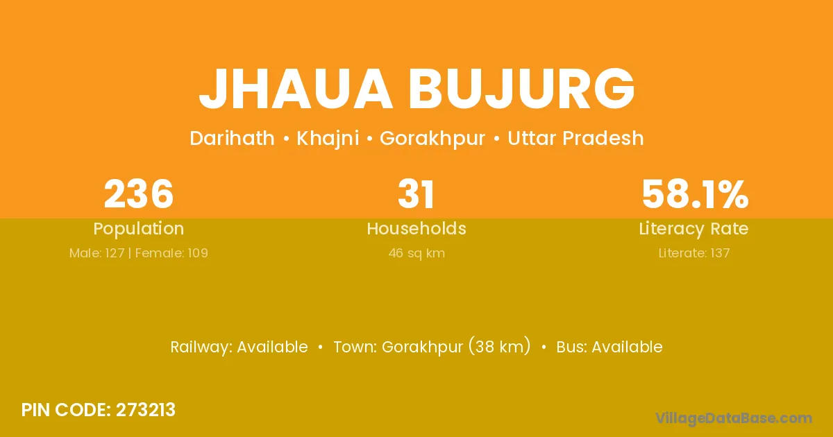 Gorakhpur (38 km) is the nearest town to Jhaua Bujurg village for major economic activities and is located approximately 38 km away.