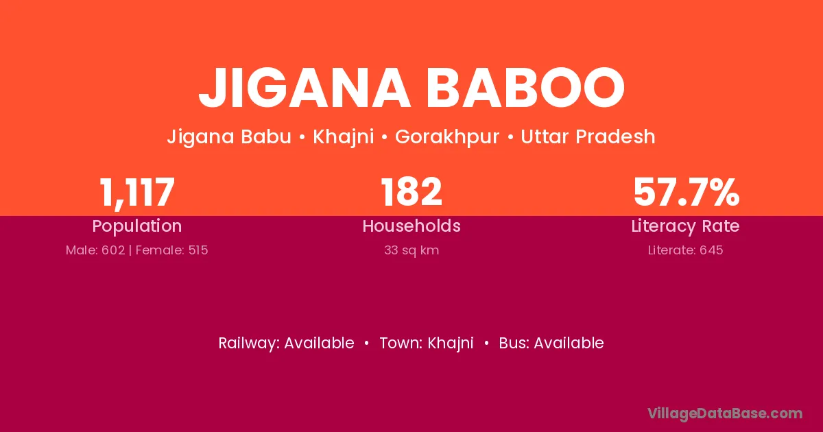 Jigana Baboo village has a total population of 1,117 people, of which 602 are males and 515 are females.