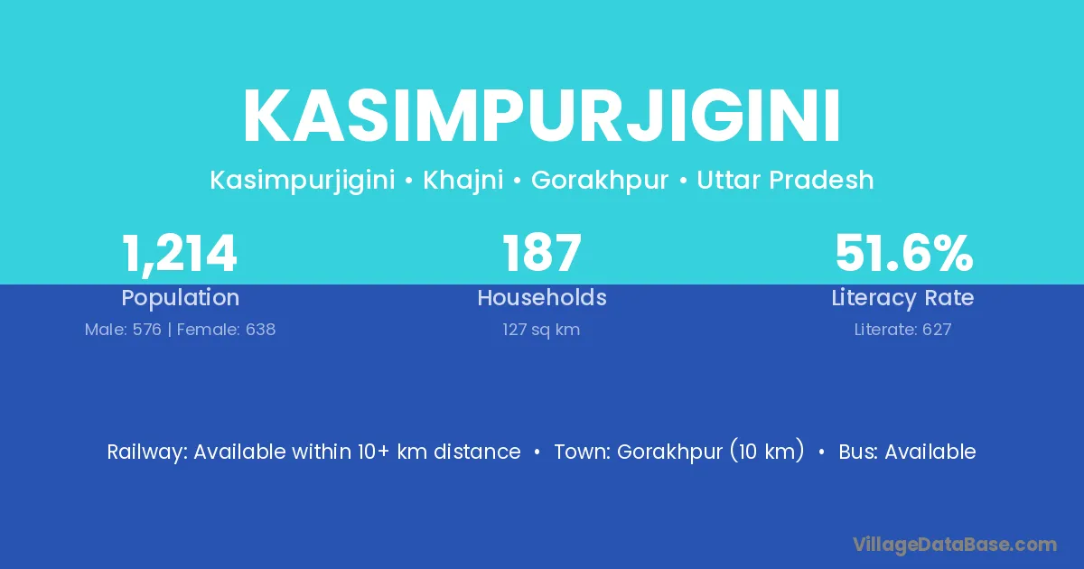 Kasimpurjigini village has a total population of 1,214 people, of which 576 are males and 638 are females.