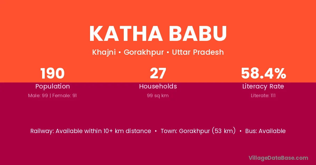 Katha Babu village has a total population of 190 people, of which 99 are males and 91 are females.