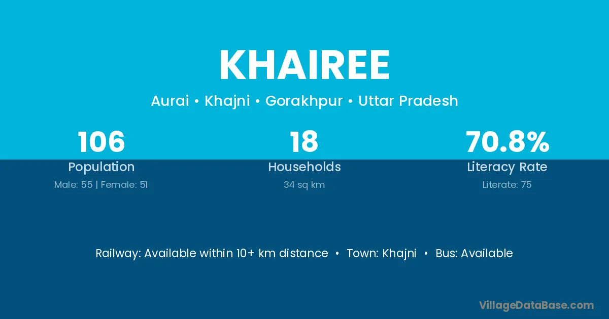 Khairee village has a total population of 106 people, of which 55 are males and 51 are females.