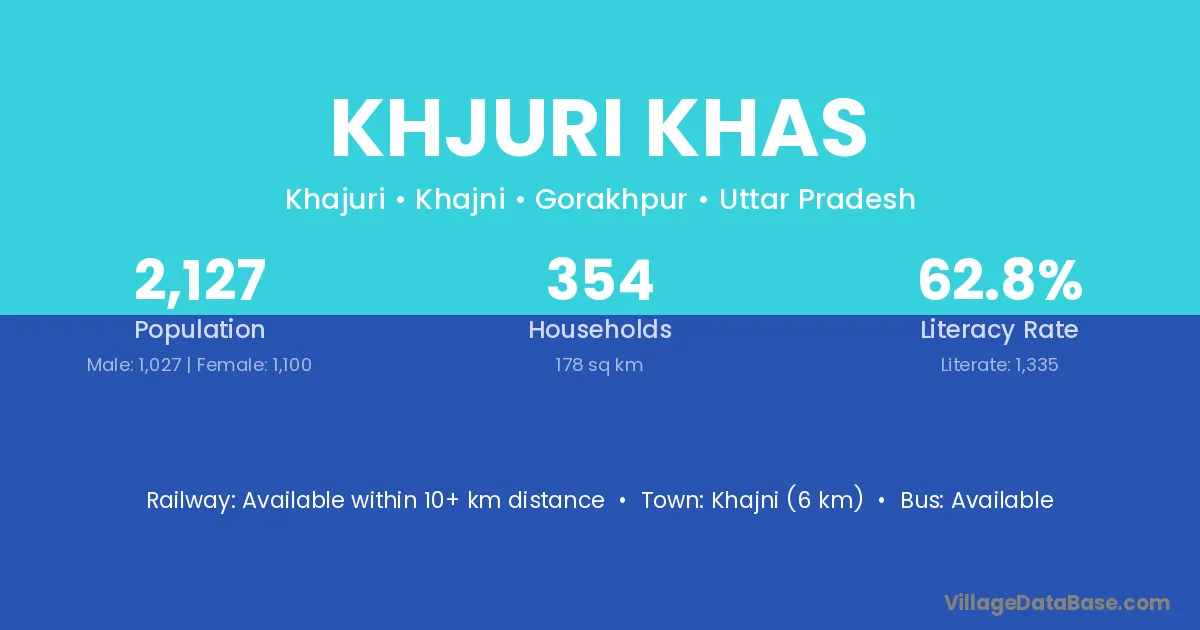 Khajni (6 km) is the nearest town to Khjuri Khas village for major economic activities and is located approximately 6 km away.