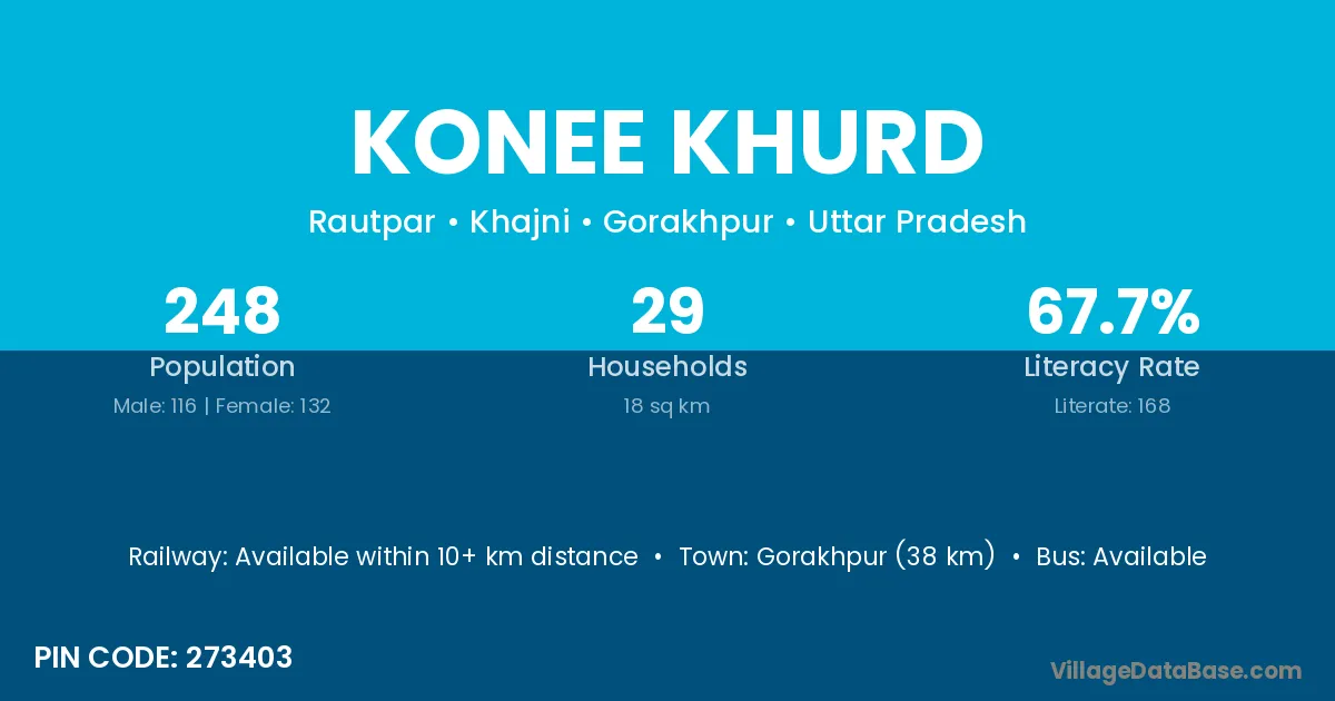 Konee Khurd village has a total population of 248 people, of which 116 are males and 132 are females.