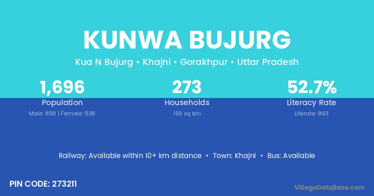 Kunwa Bujurg village has a total population of 1,696 people, of which 858 are males and 838 are females.