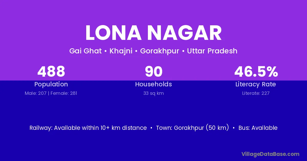 Gorakhpur (50 km) is the nearest town to Lona Nagar village for major economic activities and is located approximately 50 km away.