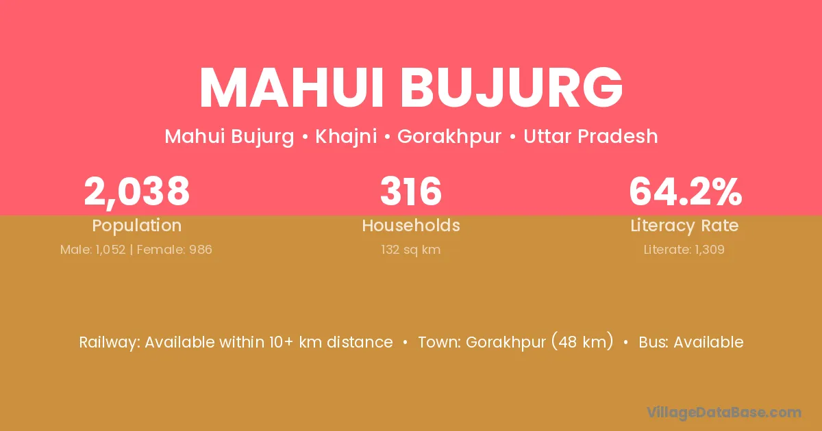 Gorakhpur (48 km) is the nearest town to Mahui Bujurg village for major economic activities and is located approximately 48 km away.