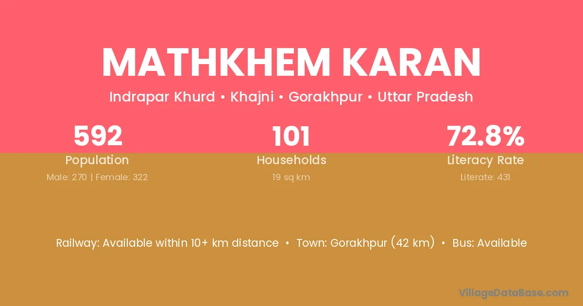 Gorakhpur (42 km) is the nearest town to Mathkhem Karan village for major economic activities and is located approximately 42 km away.