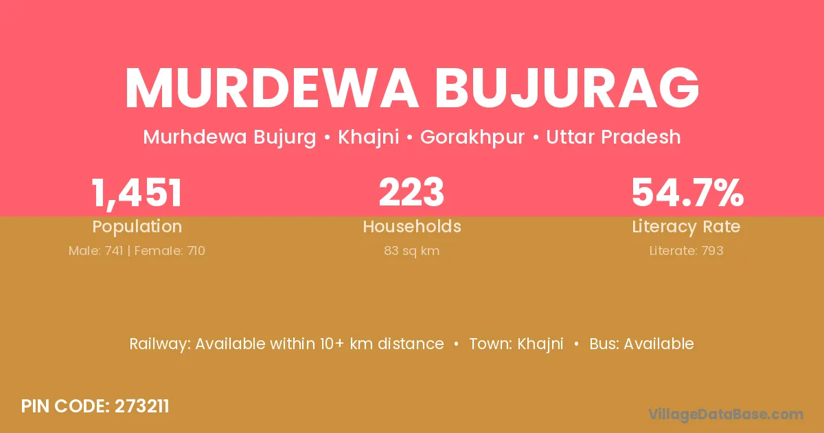 Murdewa Bujurag village has a total population of 1,451 people, of which 741 are males and 710 are females.
