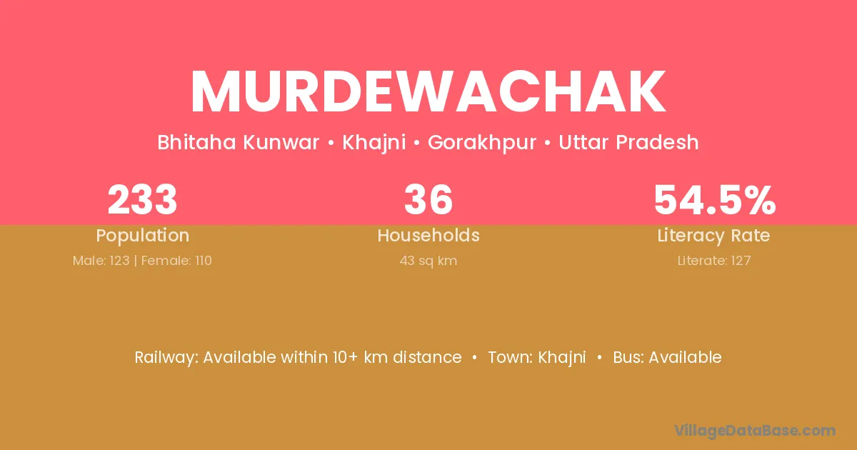 Murdewachak village has a total population of 233 people, of which 123 are males and 110 are females.