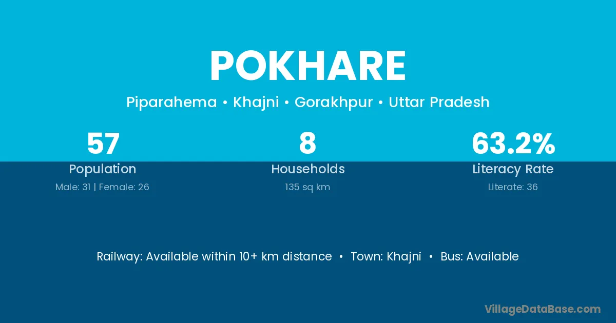 Pokhare village has a total population of 57 people, of which 31 are males and 26 are females.