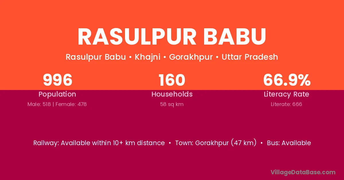 Rasulpur Babu village has a total population of 996 people, of which 518 are males and 478 are females.