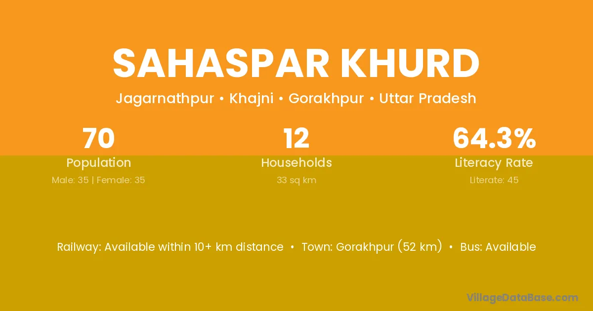 Gorakhpur (52 km) is the nearest town to Sahaspar Khurd village for major economic activities and is located approximately 52 km away.