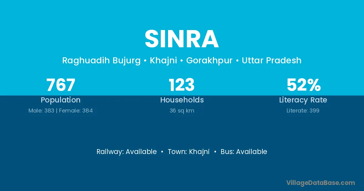 Sinra village is located in the Khajni Tehsil of the Gorakhpur district in Uttar Pradesh .