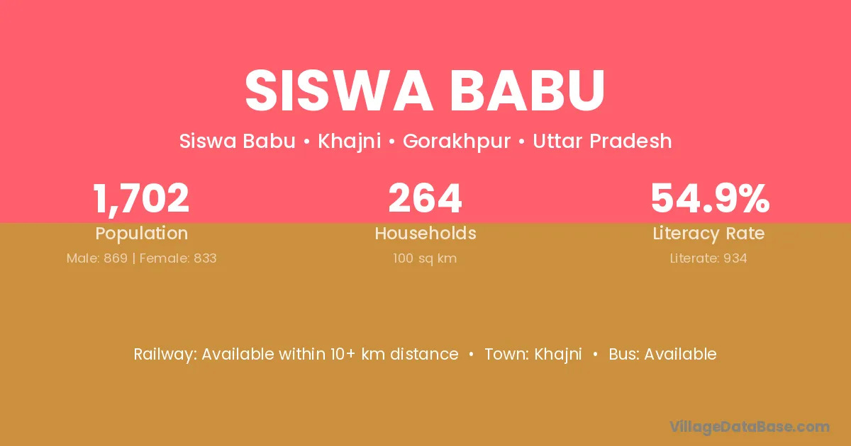Siswa Babu village has a total population of 1,702 people, of which 869 are males and 833 are females.