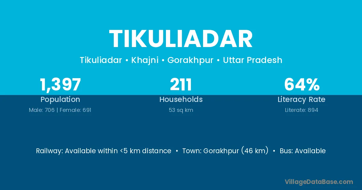 Gorakhpur (46 km) is the nearest town to Tikuliadar village for major economic activities and is located approximately 46 km away.