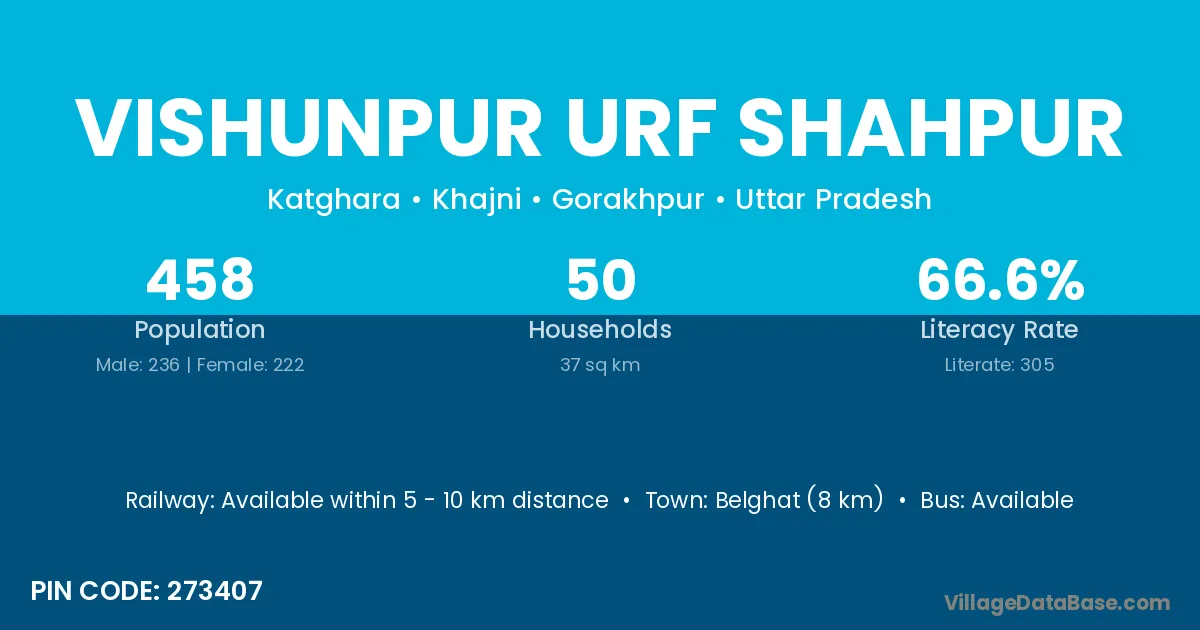 Belghat (8 km) is the nearest town to Vishunpur Urf Shahpur village for major economic activities and is located approximately 8 km away.