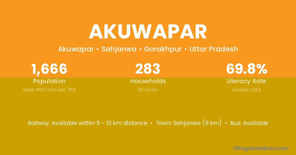 Sahjanwa (9 km) is the nearest town to Akuwapar village for major economic activities and is located approximately 9 km away.