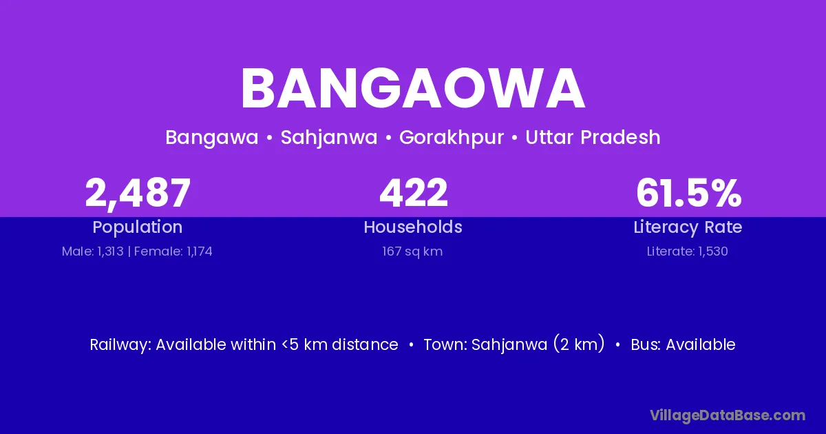 Sahjanwa (2 km) is the nearest town to Bangaowa village for major economic activities and is located approximately 2 km away.