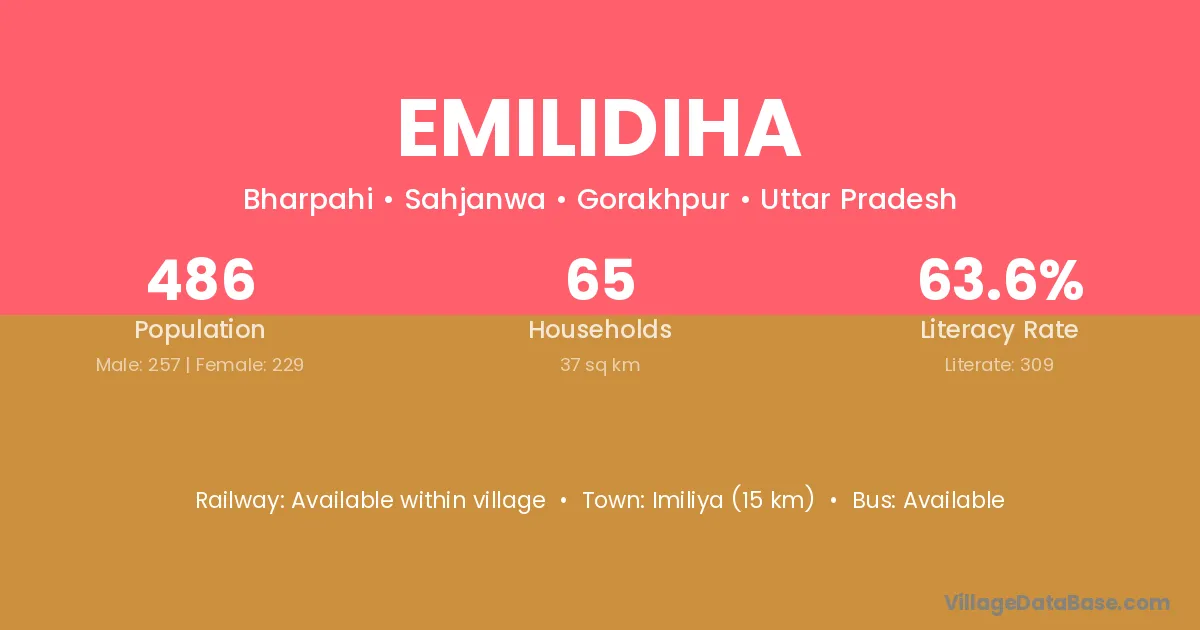 Emilidiha village has a total population of 486 people, of which 257 are males and 229 are females.