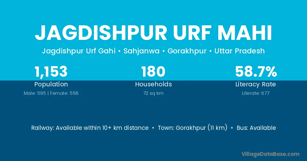 Jagdishpur Urf Mahi village has a total population of 1,153 people, of which 595 are males and 558 are females.