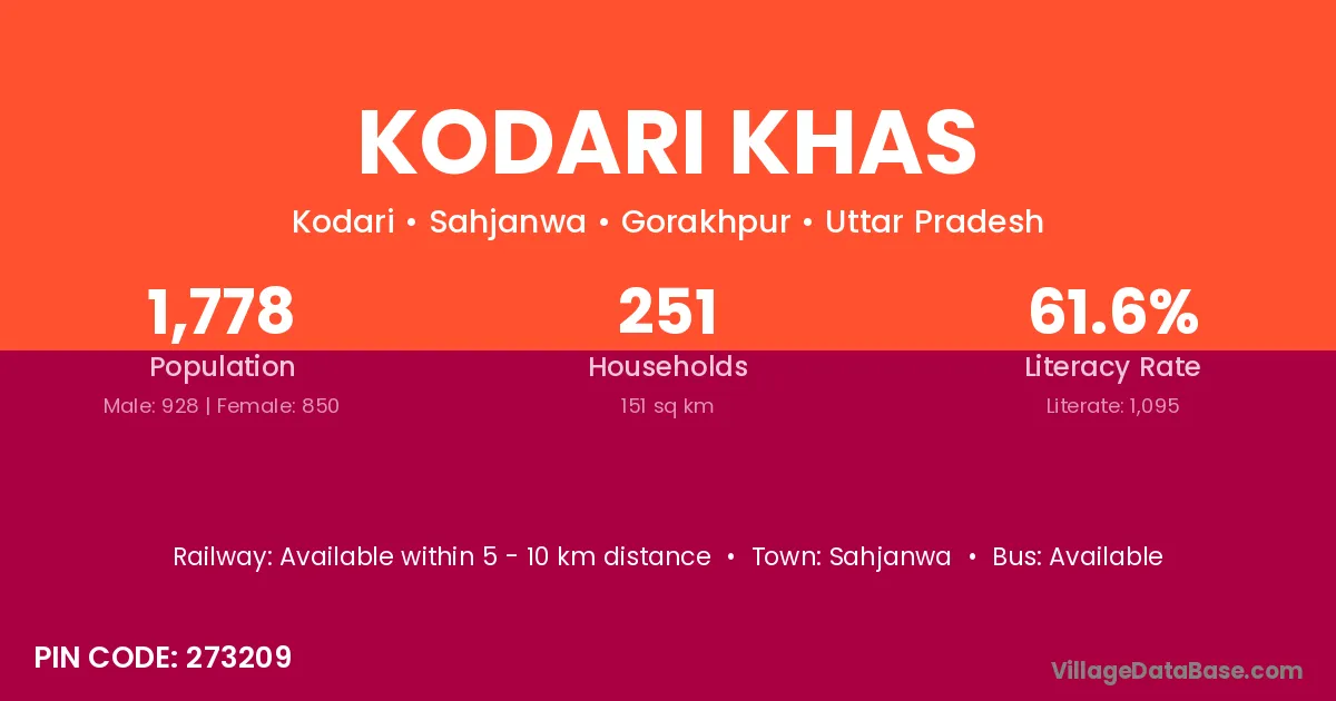 Sahjanwa is the nearest town to Kodari Khas village for major economic activities