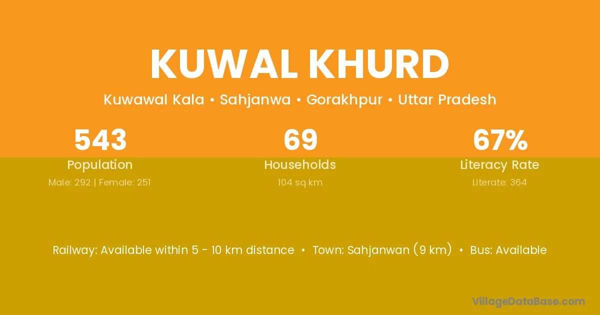 Kuwal Khurd village has a total population of 543 people, of which 292 are males and 251 are females.