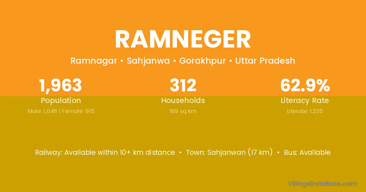 Sahjanwan (17 km) is the nearest town to Ramneger village for major economic activities and is located approximately 17 km away.