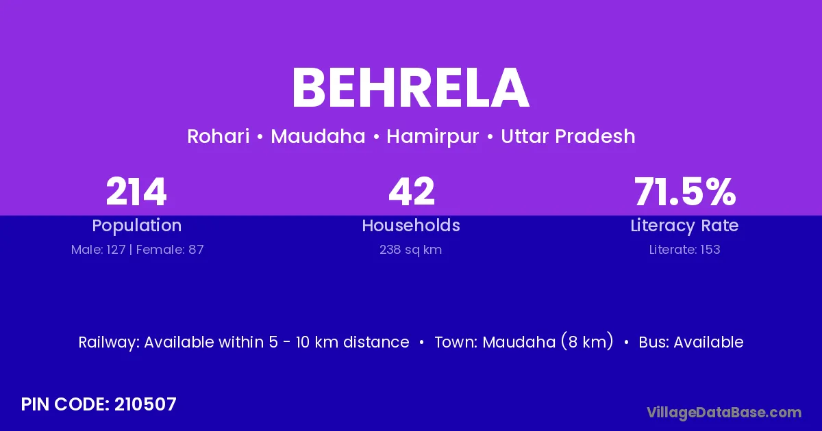 Maudaha (8 km) is the nearest town to Behrela village for major economic activities and is located approximately 8 km away.