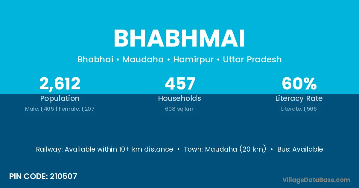 Maudaha (20 km) is the nearest town to Bhabhmai village for major economic activities and is located approximately 20 km away.