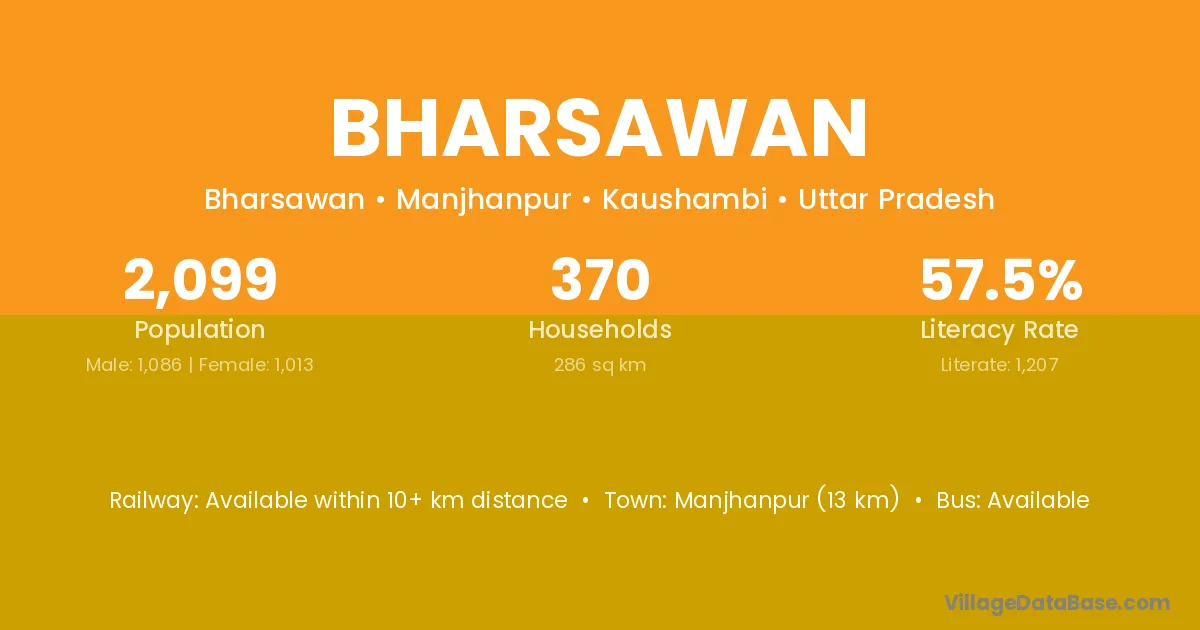 Maudaha (20 km) is the nearest town to Bharsawan village for major economic activities and is located approximately 20 km away.