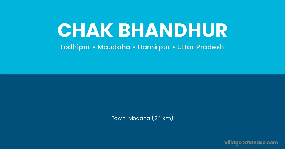 Modaha (24 km) is the nearest town to Chak Bhandhur village for major economic activities and is located approximately 24 km away.