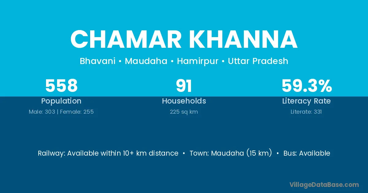 Maudaha (15 km) is the nearest town to Chamar Khanna village for major economic activities and is located approximately 15 km away.