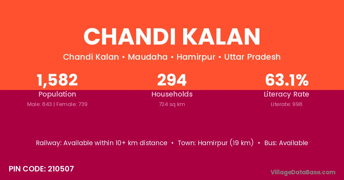 Hamirpur (19 km) is the nearest town to Chandi Kalan village for major economic activities and is located approximately 19 km away.