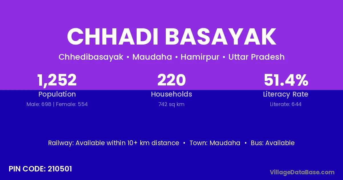 Maudaha is the nearest town to Chhadi Basayak village for major economic activities