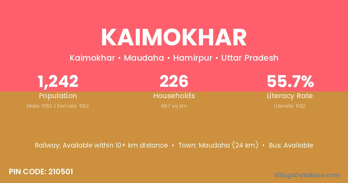 Maudaha (24 km) is the nearest town to Kaimokhar village for major economic activities and is located approximately 24 km away.
