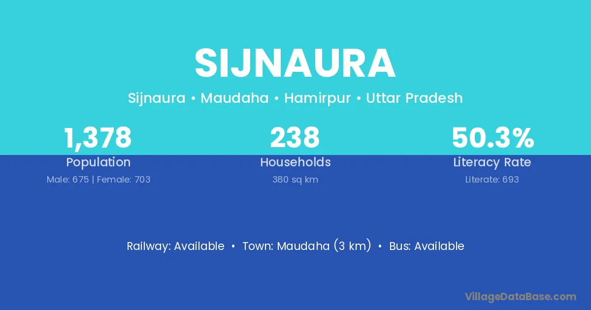 Maudaha (3 km) is the nearest town to Sijnaura village for major economic activities and is located approximately 3 km away.