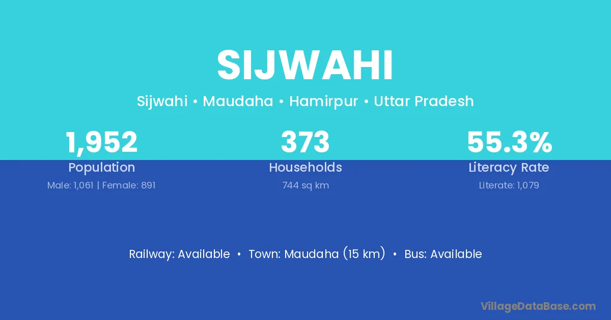 Maudaha (15 km) is the nearest town to Sijwahi village for major economic activities and is located approximately 15 km away.
