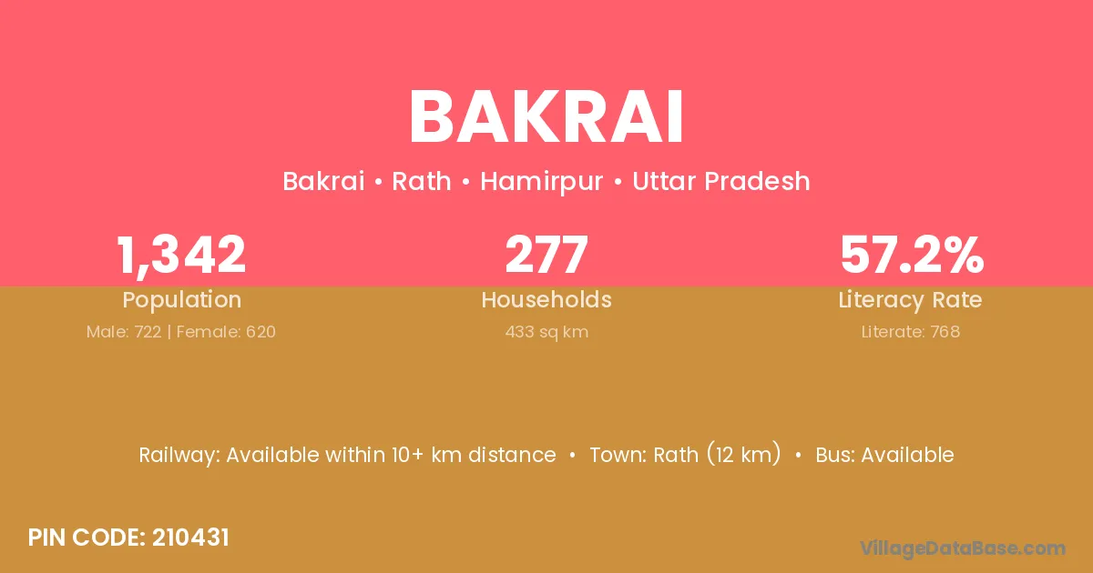 Bakrai village has a total population of 1,342 people, of which 722 are males and 620 are females.