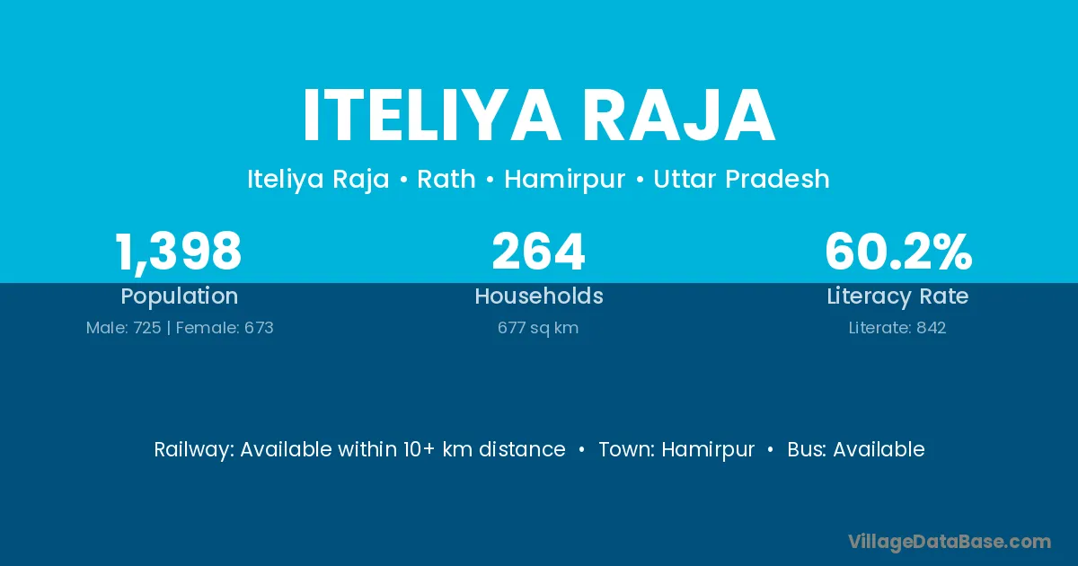 Hamirpur is the nearest town to Iteliya Raja village for major economic activities