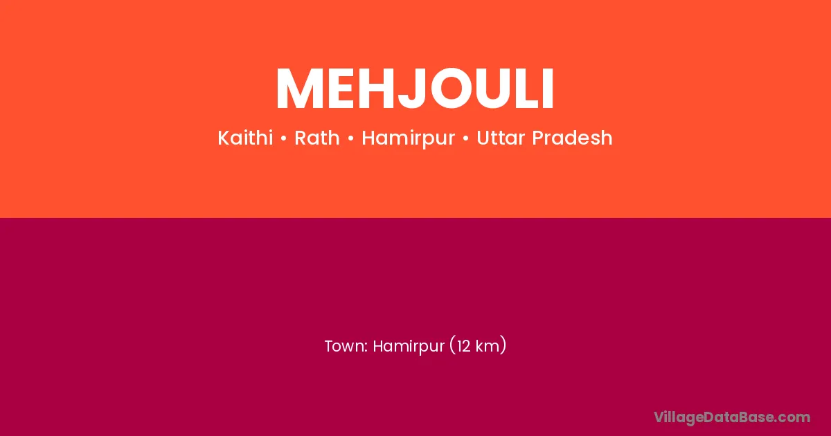 Hamirpur (12 km) is the nearest town to Mehjouli village for major economic activities and is located approximately 12 km away.