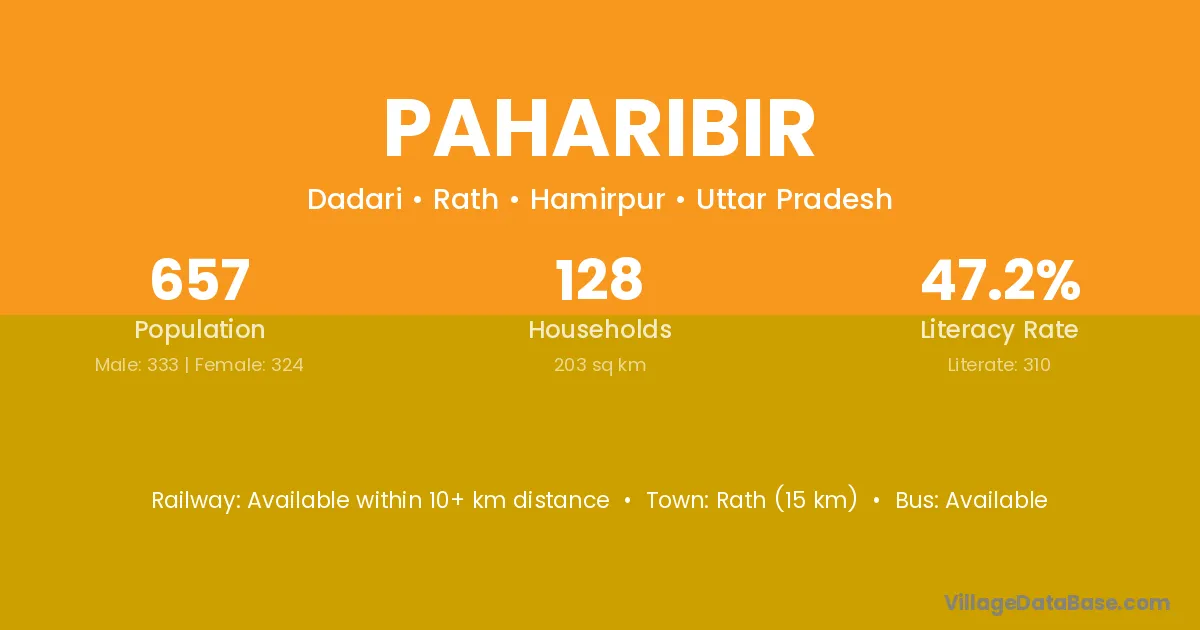 Rath (15 km) is the nearest town to Paharibir village for major economic activities and is located approximately 15 km away.