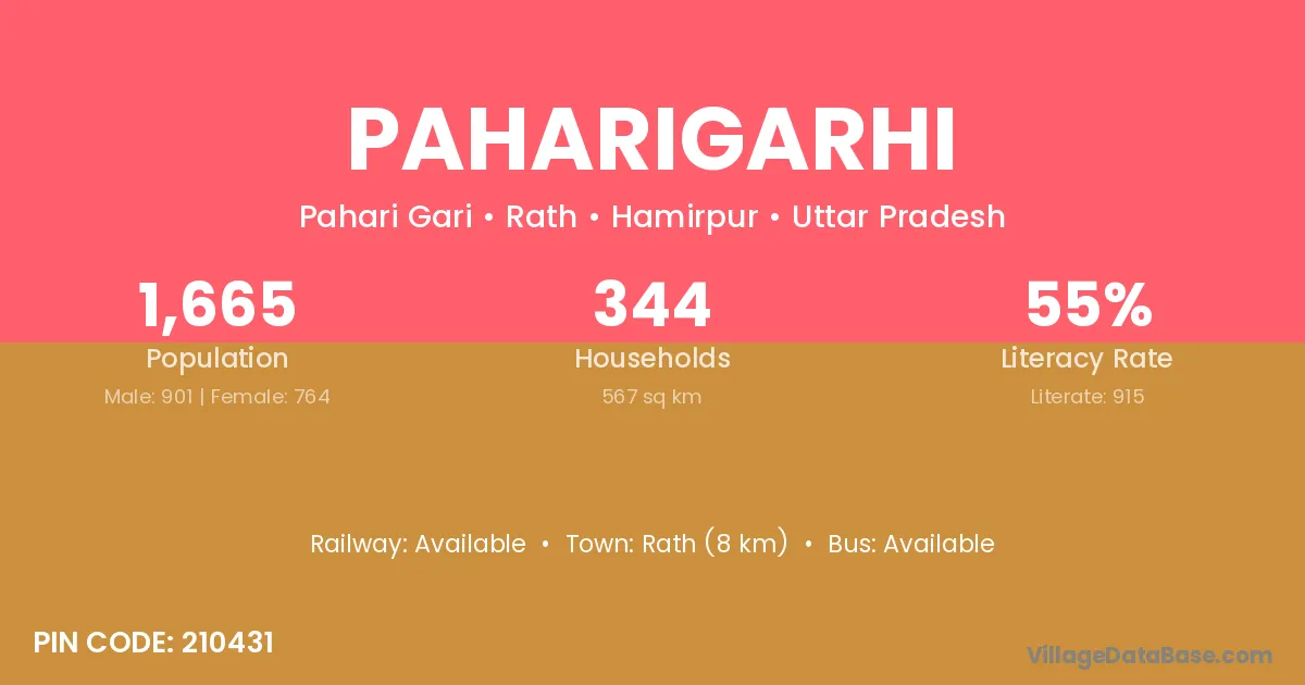 Rath (8 km) is the nearest town to Paharigarhi village for major economic activities and is located approximately 8 km away.