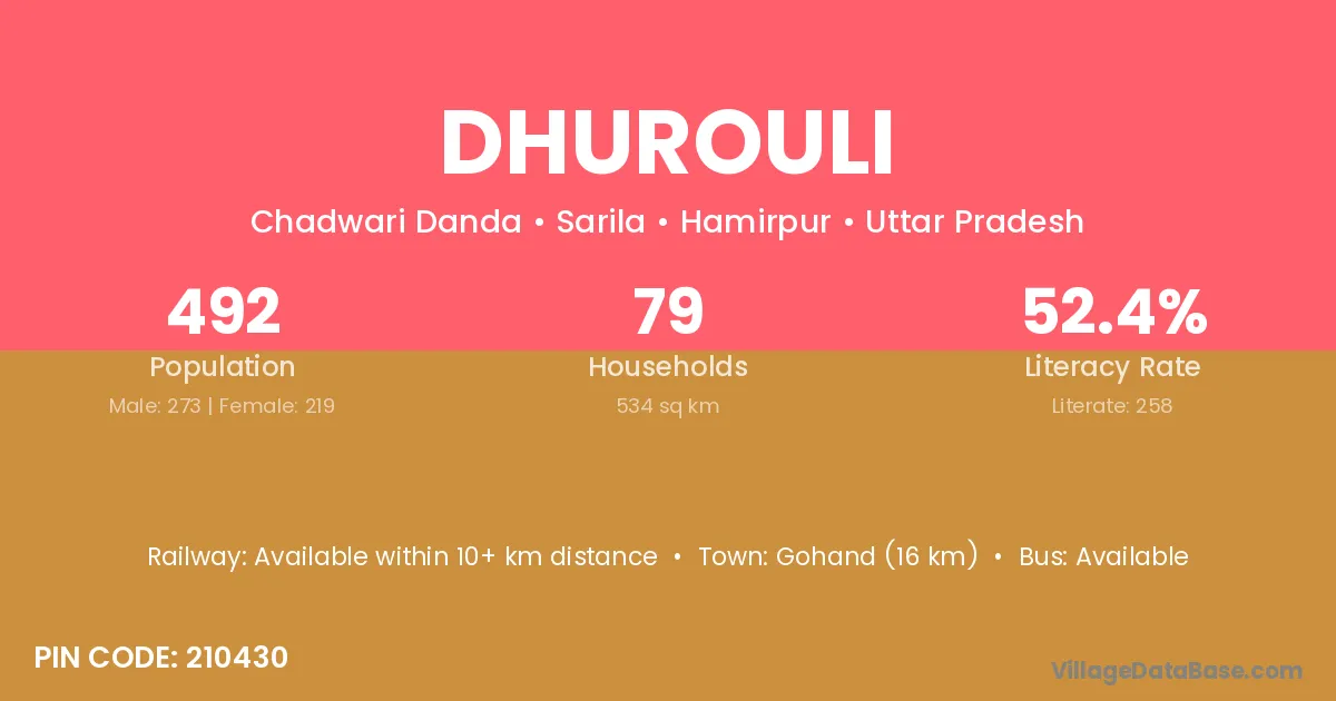 Gohand (16 km) is the nearest town to Dhurouli village for major economic activities and is located approximately 16 km away.