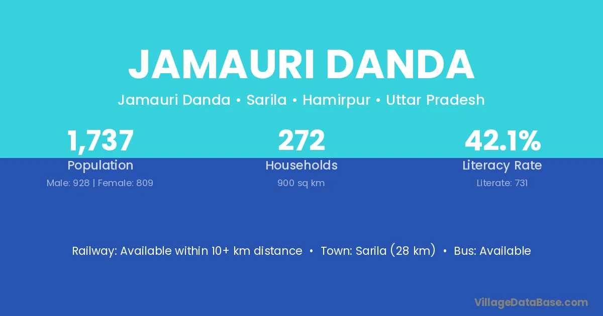 Sarila (28 km) is the nearest town to Jamauri Danda village for major economic activities and is located approximately 28 km away.