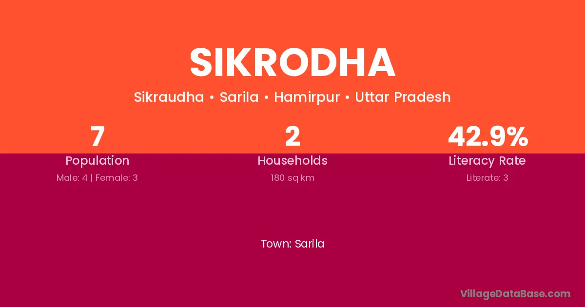 Sikrodha village has a total population of 7 people, of which 4 are males and 3 are females.