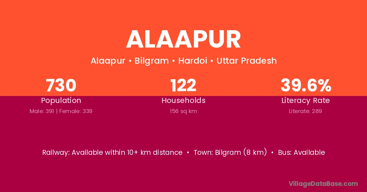 Bilgram (8 km) is the nearest town to Alaapur village for major economic activities and is located approximately 8 km away.