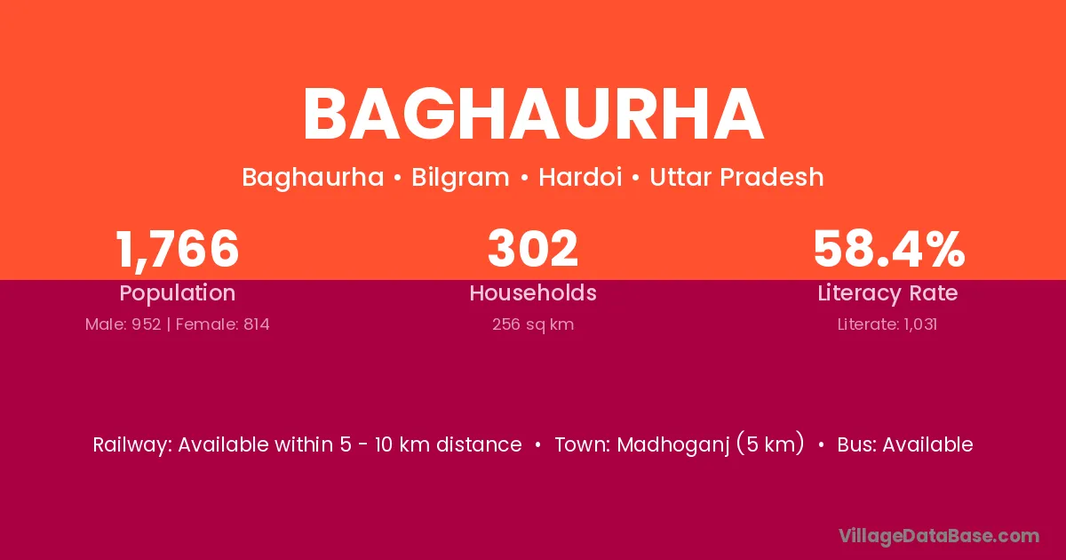 Madhoganj (5 km) is the nearest town to Baghaurha village for major economic activities and is located approximately 5 km away.